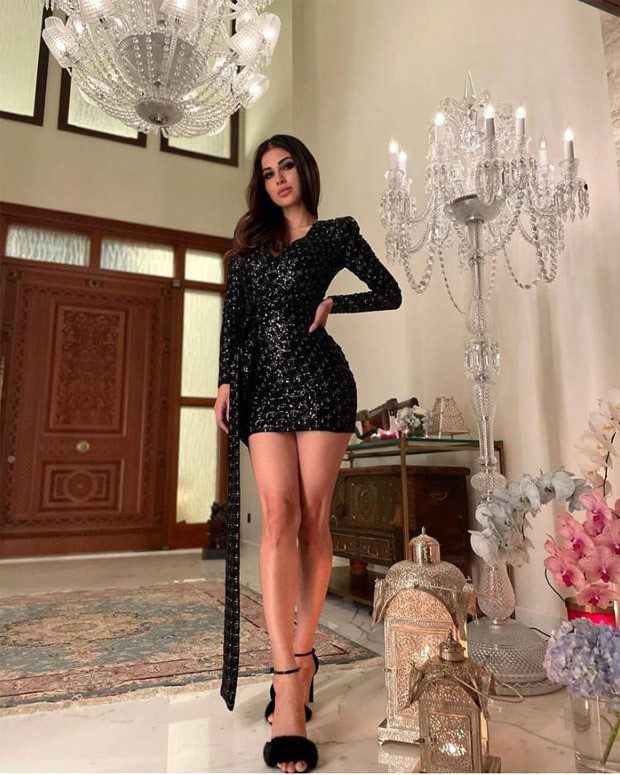 The beauty of grace, Mouni dazzled in a black gown paired with a brown corset and sleek hair; she looked spectacular.