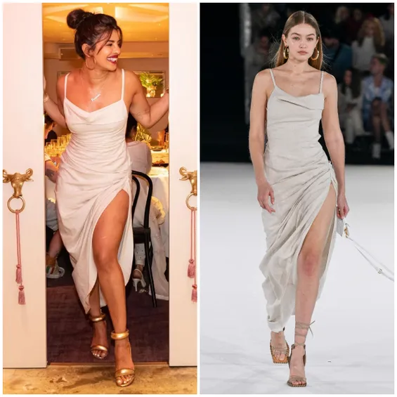 Priyanka Chopra wore the Rs 59,000 worth backless off-white dress that Gigi Hadid donned on the Jacquemus 2020 runway.