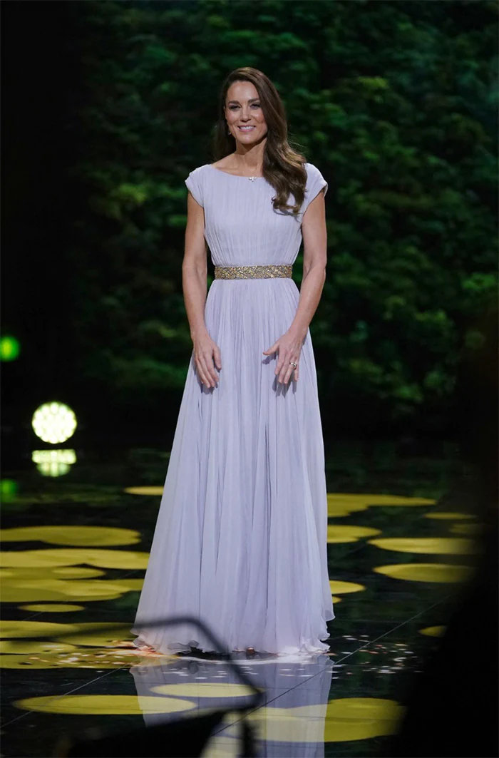 Kate, the beauty of grace, looks gorgeous in this lilac gown paired with the golden belt, which makes it a great fit for prom.