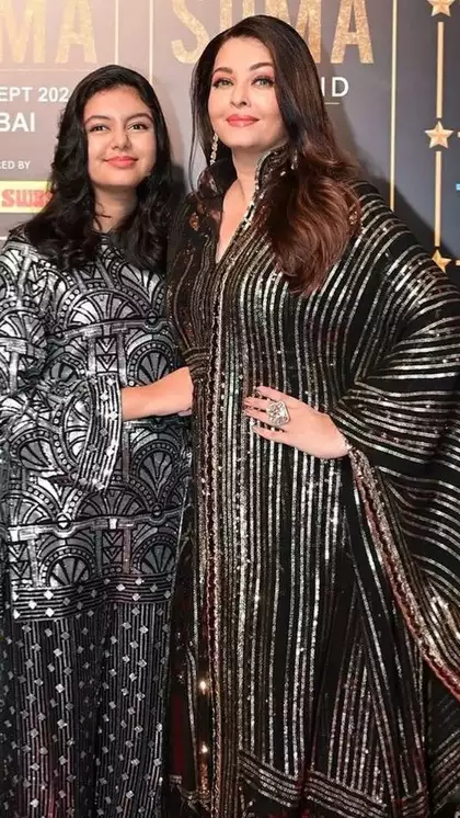Aishwarya and Aaradhya blazed in matching outfits at SIIMA 2024; they wore intricate sequin embellishments that added a touch of drama.