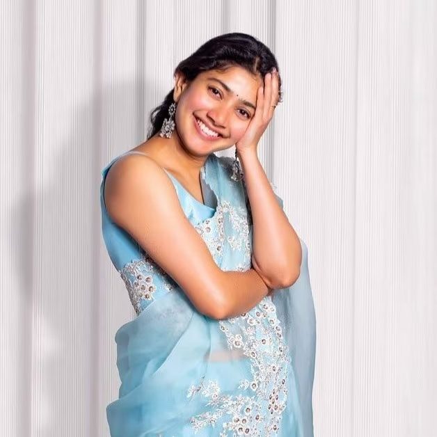 Sai stole all our hearts in this blue embroidered saree styled with dangling earrings.